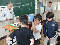 3年生から習字の学習が始まります。そこで今日は、天王にお住まいの辻尾先生に、習字を教えていただきました。 今日、練習する漢字は、「王」。むずかしいぞ! 辻尾先生からは、「王」を書くときのポイントをていねいに教えていただきました。 「よくがんばったね。」「たいへんよろしい(^o^)」ほめてもらった子どもたちは大喜び!すばらしい作品ができあがりました。次回の学習は6月1日(金)です。楽しみです。