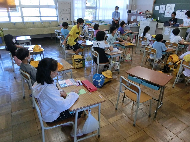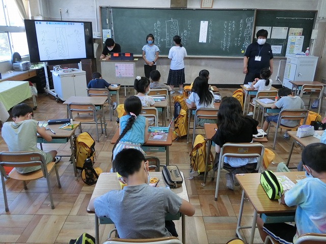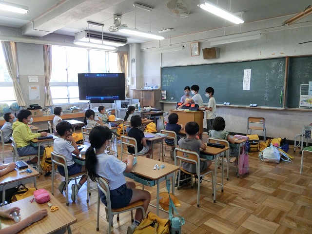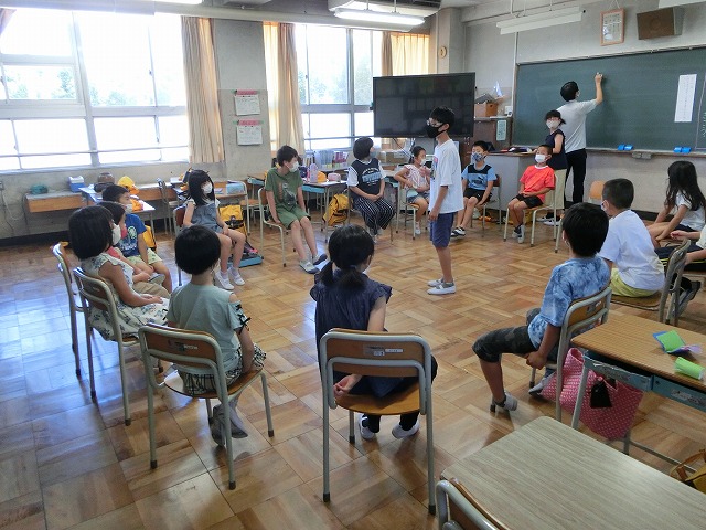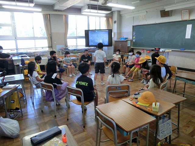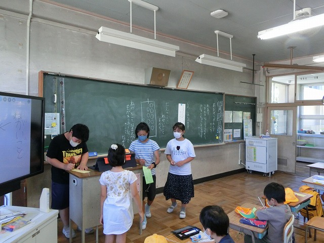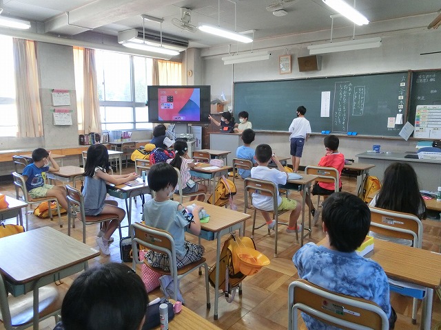 ①夏祭りに来校頂くふくろう工房さんと田辺みどりの風作業さんについて6年生からの発表
