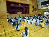 たとえば運動会をするときには、自分だけががんばっているのではない、競技でも力をあわせる、準備をしてくれる人、応援してくれる人、いろいろな人のつながりの中で実施ができる、また、地域のさまざまな行事がある、そこには人がいる、昔から引き継いでくれている人がいる、建物がある、まつりがある・・・。いろいろなものや人とのつながりがある、それを感じ築いていけるといいという話でした。