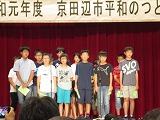 広島を訪問した小中学生の感想発表等が行われたあと、平和書道展入選者の表彰が行われ、本校からも受賞者が表彰を受けました。