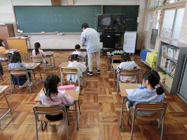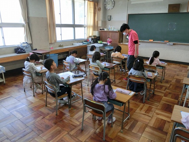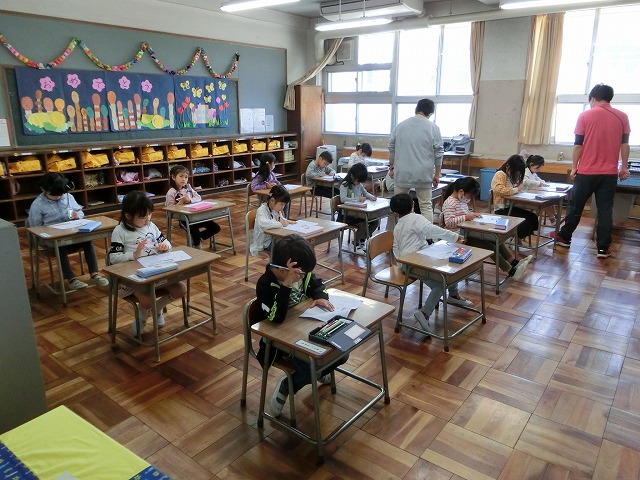4月14日(金)1年生の国語では、「ひらがな」を学習しています。今日は『い』を勉強しました。鉛筆の持ち方や姿勢、字のバランスに気をつけながら書きました。