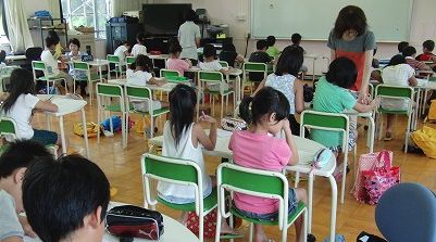 7月24日(木)、3日目となったこの日も40名以上の子どもたちが参加しました。これまでと同じように15分間集中、5分間休憩を4回繰り返しました。