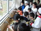 おいしそうにモリモリ食べる5年生を見て、幼稚園の子どもたちも