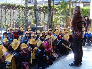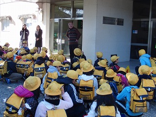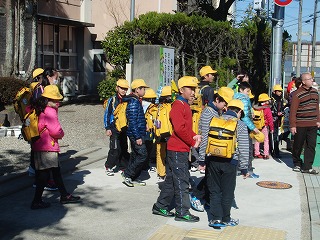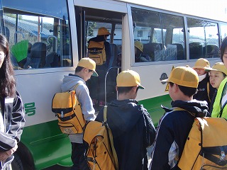 担当の先生の話が終わると地域ごとに下校します。学校前の横断歩道を渡って歩いて帰る地域、路線バスに乗って帰る地域、スクールバスに乗って帰る地域等、様々ですが、上の学年が下の学年をしっかりと誘導しています。