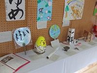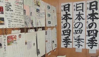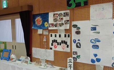 低学年は、絵画や工作、習字作品等を展示しています。(→続きを読む) 高学年はさらに課題ポスター(明るい選挙・人権等)や壁新聞等を展示しています。