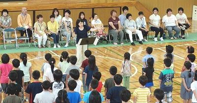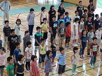 全校合唱は 「やぁ!」と「ほしまつり」の2曲を歌いました。指揮者は音楽主任:上村弘子教諭。
