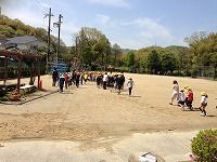 家庭科室から出火したとの想定で、各教室から運動場まで、学年ごとに並んで避難しました。初めて参加した1年生もがんばりました。
