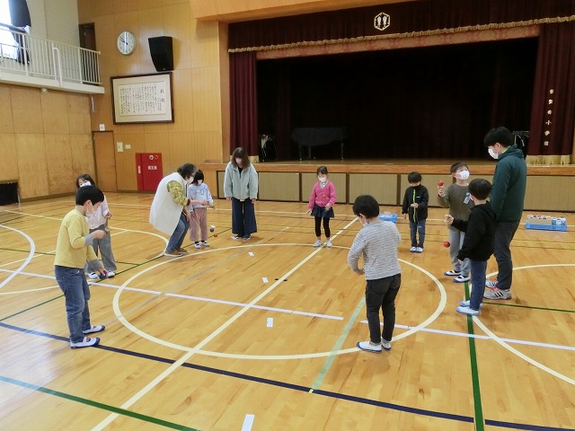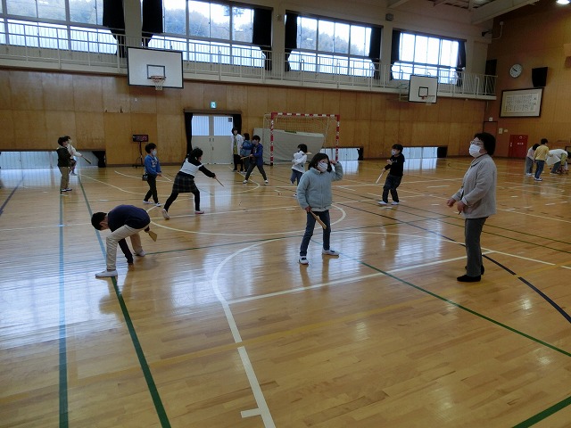 3月2日(木)の2・3時間目に、1・2年生が昔遊び体験をしました。民生児童委員さん9名と京田辺市社会福祉協議会の方に来校いただき、けん玉や羽根つき、坊主めくりやコマ回しなど、それぞれのブースに行って楽しみました。子どもたちは講師の皆さんの話をしっかり聞きながら、一緒に楽しみました。