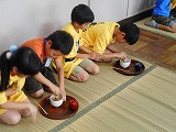 お茶摘みをした茶葉がお抹茶となり(積んだものではありませんが)、このような形で子どもたちは楽しみました。