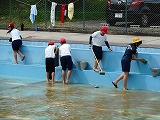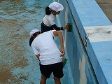 今年は、自分たちの出番、先輩6年生に教えてもらいながらプール掃除に汗を流しました。