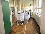コロナ感染防止に気をつけてのスタートです。静かに配膳、黙食です。感染防止に気をつけながらおいしい給食をいただきました。