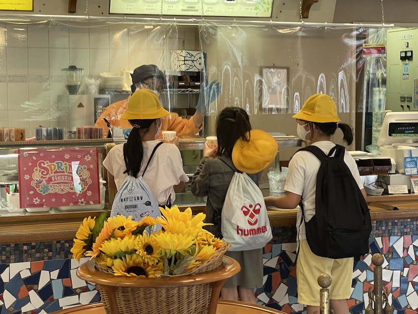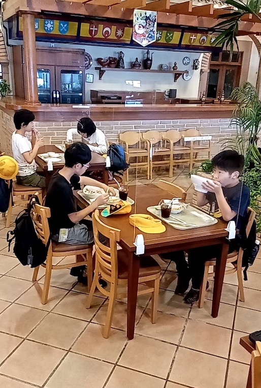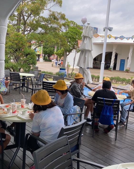 志摩スペイン村に到着しました。すぐに玄関で記念写真を撮って昼食に出発です。