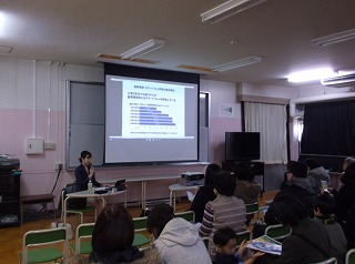 3月3日(土)青少年問題連絡協議会普賢寺地域委員会主催の子育てセミナーを行いました。セミナーではNTTドコモのインストラクターの桜井さんを講師に招いて、「スマホ・ケータイ安全教室」の講演を行いました。スマホやケータイを使う際の注意点などについてスライドを使いながら丁寧に講演していただきました。講演いただきました桜井さんありがとうございました。