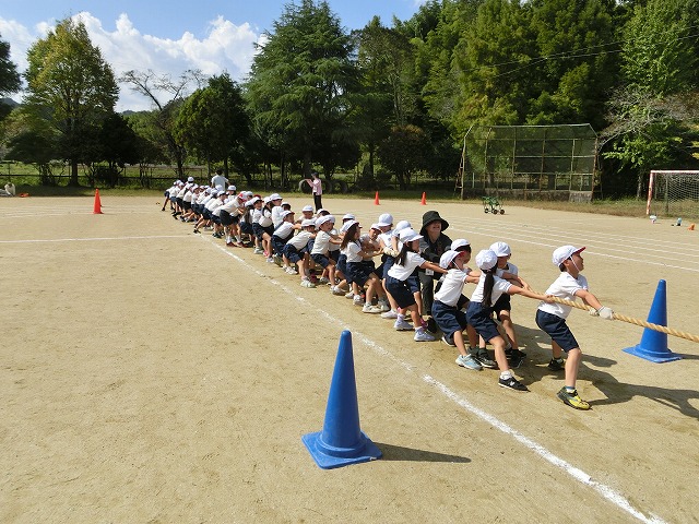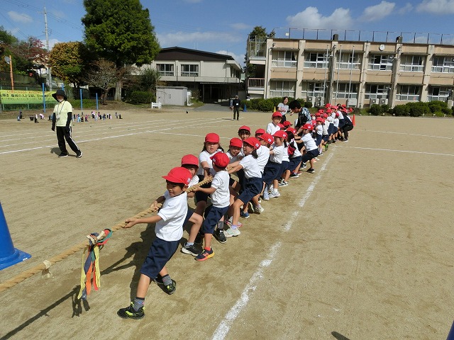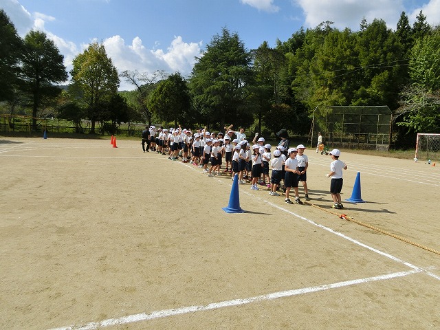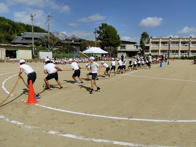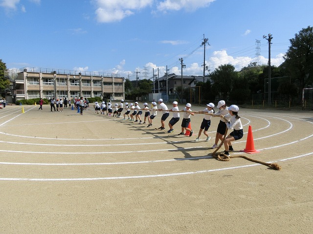 今年の児童会種目は「走って!引いて!勝利をつかめ!加わり綱引き」で、まずは低学年が綱を引き始め、中学年が加わり最後に高学年が加わって綱を引き合います。走ったり引いたりという動きがあって、子どもたちはとても楽しそうに練習しました。
