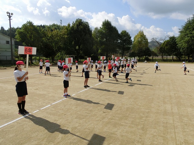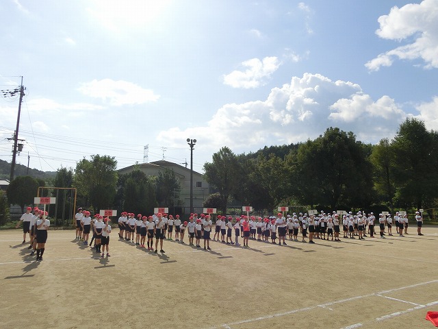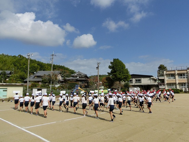 10月17日(火)今日の2・3時間目に運動場に全校で集まり、運動会全体練習・児童会種目練習を行いました。全体練習では開閉会式の流れの確認、校歌斉唱・ラジオ体操をみんなで行いました。