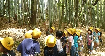 少し前のことですが・・・1、2年生は生活科の学習で、学校周辺の探検に出かけました!学習の目当ては、地域を知ることと5月の季節を体いっぱいに感じること。 高台からは学校が小さく見えました。竹林を超えて浄楽神社にも立ち寄りました。