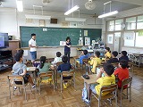 今年度は、田辺中学校の英語科から下川正美教諭に来ていただき外国語活動の学習を行っています。下川先生に小学校に来ていただくことで、児童がより専門的な指導を受けることができたり、小中の接続をスムーズに行ったりするだけでなく、本校の先生方の外国語活動の指導方法へのアドバイスをいただき、改善していくことにも繋がります。