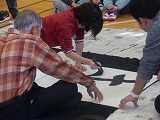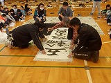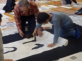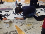 大きな大きな画仙紙に、一人一文字ずつ書き、5~6人で1枚の作品を仕上げていきました。