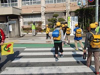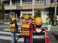 PTAやボランティアなど関係の皆様には、子どもたちが安全に登下校できるようにご協力をいただき、有り難うございます。 校門前の横断歩道では、交通誘導員さんが信号機のボタンを押すなどして、登校してくる子どもたちを安全に誘導しています。