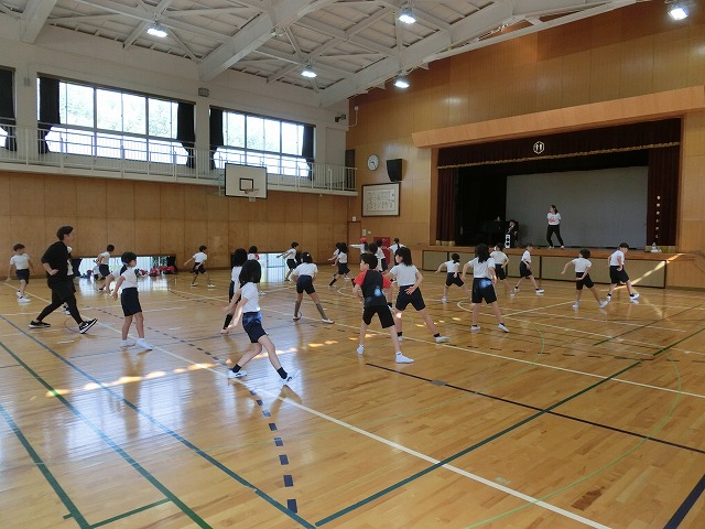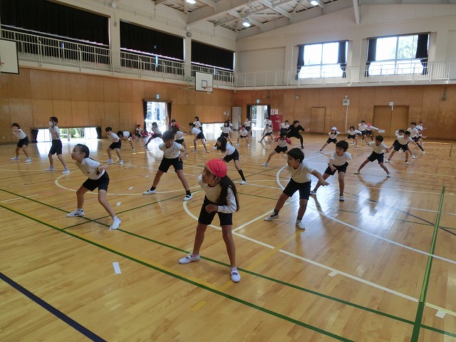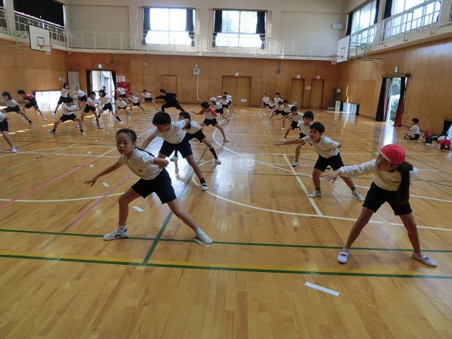 10月16日(月)今日も元気な3・4年生は、表現練習を体育館で行いました。踊りをマスターしている子がドンドン増えてきて、全体の動きがそろってきました。