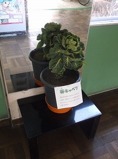 本校では食育の一環として栄養教諭や調理師が中心となり、子どもたちに興味を引くように実際の食材の展示をしています。今回は芽キャベツを展示しました。普段の大きなキャベツはよく目にしますが、芽キャベツの形態や実際にどの部分から芽が出ているかを知る絶好の機会となりました。子どもたちが、食材に興味を持ち、栄養のバランスを考えながら食事をしてくれるように指導していきたいと考えます。