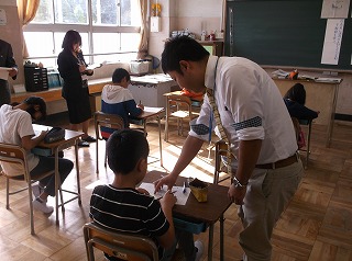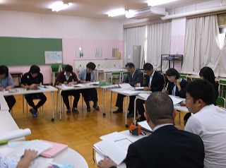 10月23日(月)猛威を振るった台風も去って、子どもたちは元気に登校してきました。この日は兵庫教育大学の勝見教授や京都府山城教育局、京田辺市教育委員会の指導主事にもお越しいただいて、校内授業研究会を行いました。本校は昨年度より勝見教授にご指導いただき、単元全体の構成を考えながら授業を進める研究に取り組んでいます。今年度は京都府山城教育局の学校力向上トライアル校の指定も受け、山城教育局の指導主事の皆様にもご指導いただいています。この日は、まず研究授業として、5年生国語科の「社会をよりよくするための意見文を書こう」という単元の授業を行いました。その後、この授業を題材にして全員で、教職員の授業力向上を目指すための方策について考えました。最後に勝見教授より丁寧な指導していただきました。この研究会で学んだことを今後の指導に役立てていきたいと考えます。