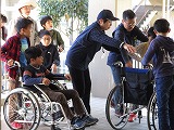 子どもたちの多くは、車いすに乗った経験がありません。押した経験もありません。