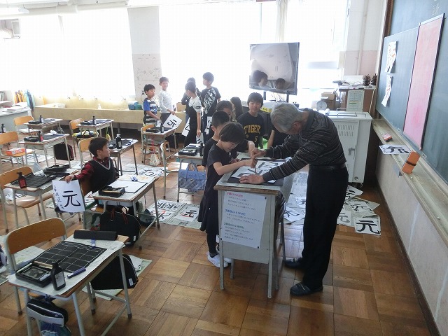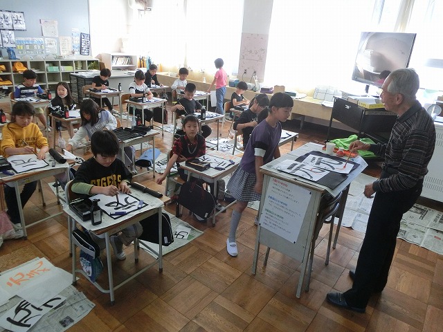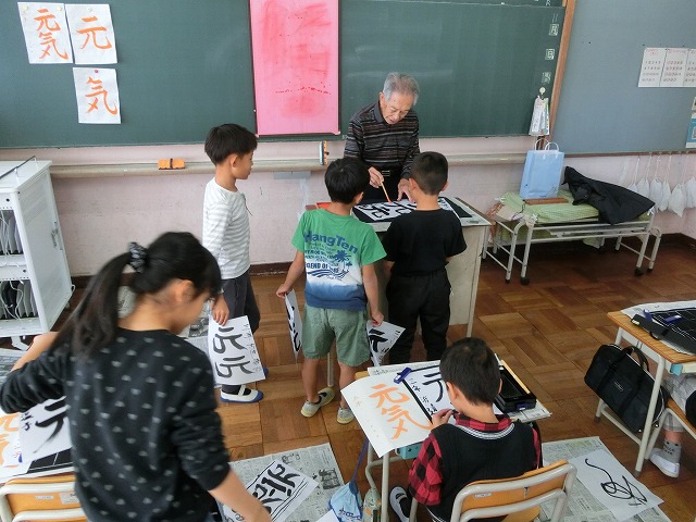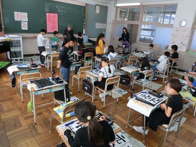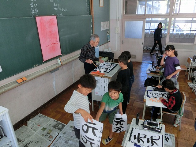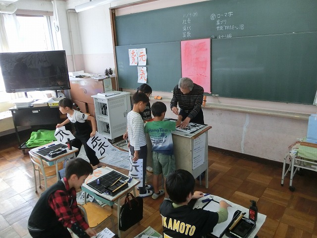 11月8日(水)運動会の取組等でしばらく辻尾先生との習字はお休みしていましたが、今日の2時間目に久々に来校いただき、習字を教えていただきました。