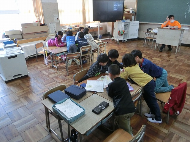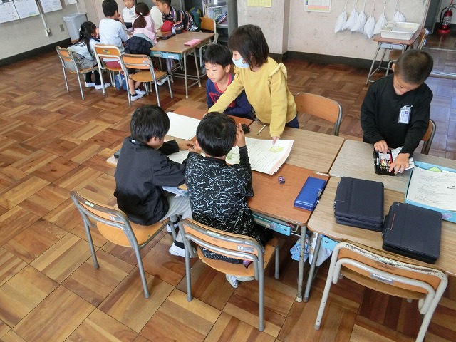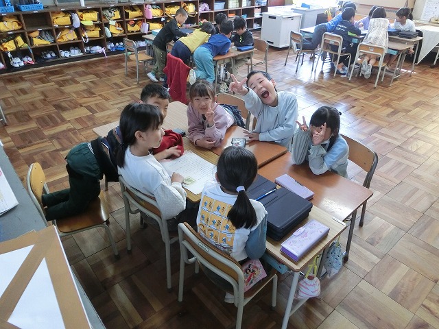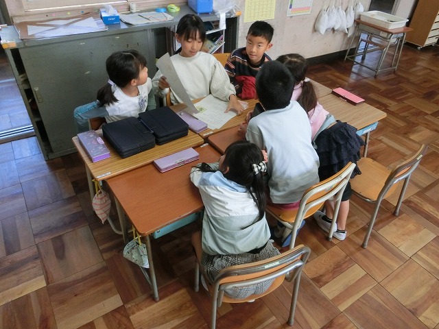 10月25日(水)2年生は、音読劇がとても楽しかったようで、今回は物語すべてをグループで分担して音読劇にするため、役割分担や読み方の工夫などについて考えました。子どもたちは頭を寄せ合って一生懸命話し合いました。
