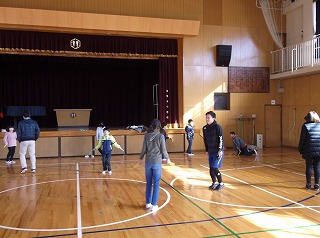 1月15日(月)から1月26日(金)までの2週間、寒さに負けない体力をつけることを目的としたなわとび週間を始めました。取組初日の15日(月)は運動場があいにく雨の影響で使用できないので、全校児童が体育館に集まってなわとびを行いました。児童は各々が自分の目標を決めて一生懸命練習していました。寒い日が続きますが、なわとびを通して体力づくりをしていきたいと考えています。