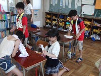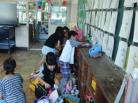 7月はグランドの草引きを予定していましたが、連日の厳しい暑さにより、きゅうきょ、教室の机、いすやロッカー、1学期に使った道具などをきれいにする活動にしました。