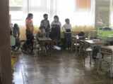 まずは「いかのおすし」など、大切なことを担任が指導しました。そのあとは、教室に侵入されないように、そして自分の身を守るために具体的にどうするのか、実際に行動してみました。