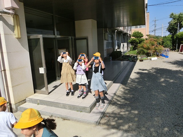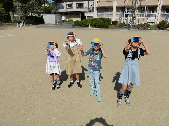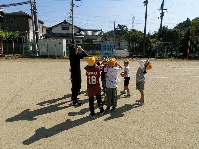 10月19日(木)今日は理科「太陽と影」の勉強で、今日は遮光板使って太陽の観察をしました。初めて見る遮光板を使ってみる太陽は緑色に見えて、「先生見て!見て!」と子どもたちは目を輝かせて観察していました。