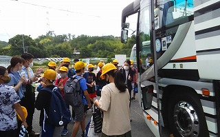 出発式を終えて、バスに乗り込みます。
