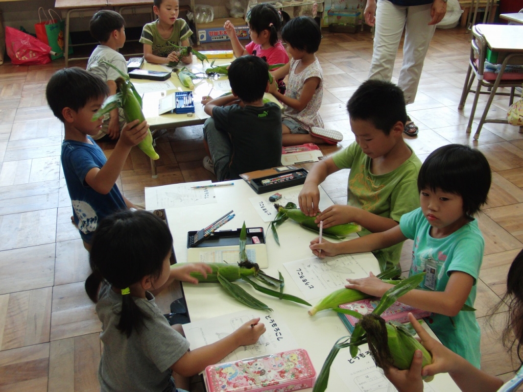 先週、2年生がとうもろこしの皮(葉)むき体験をしました。