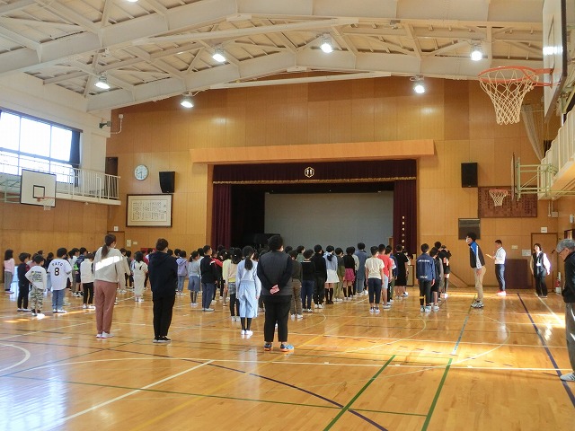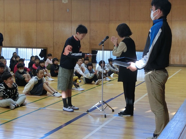 11月1日(水)今日も全校で体育館に集まり、11月の全校朝礼を行いました。校長先生からは、度重なる行事「学習発表会」「創立150周年記念式典」「創立150周年記念ふげんじっこ大運動会」での、子どもたちみんなのがんばりを見ての感想と、今月は一人一人に光を当てて、担任の先生とお話する時間を持ちます等のお話がありました。その後、伝達表彰、亀井先生から11月の月目標「本をたくさん読もう」についてのお話がありました。
