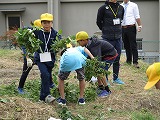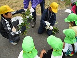 幼稚園児と一緒に実をとる作業からスタートしました。