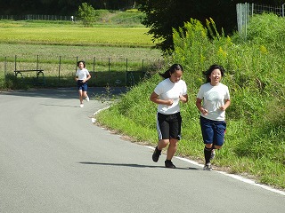 学校東側の農面道路に折り返しでの1500mのコースを作り練習しています。