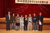 4日の日曜日に「京田辺市子ども主張大会」が中央公民館で行われ、本校の代表として、6年藤林怜平君が「あきらめないで!!目標を決めてやる事」をテーマに、夏休みにお父さんやお父さんの友だちと富士山に登った経験から感じたり考えたこと、努力する大切さについて、堂々と発表しました。発表者のトップバッターでしたが、落ち着いた態度で、わかりやすい素晴らしい発表でした。本校から3人参加しているチェアグループ「ラブリーエンジェル」の軽快な応援演技もありました。