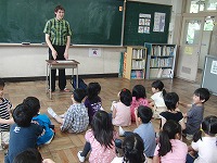 1・2年生が、AETのブランドンから英語レッスンを受けました。
