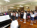 7月6日(金)夏祭りに向けて、全校で歌の練習を行いました。