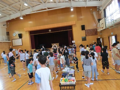 7月7日(木)2時間目に、例年通りふくろう工房さん・みどりの風作業さんから来校いただき、夏まつりを行いました。今年のめあては「地域の人たちと交流し、協力してもり上がる夏まつりにしよう」でした。