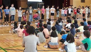 6月4日(水)の児童集会で、4,5年生が林間学習を五・七・五調で振り返りました。