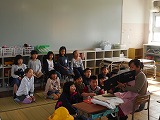 金曜日は朝から教室にござを敷いて、読んでもらうのを楽しみにしています。