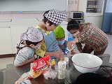 3人で協力して、粉を計ったり、混ぜたり、焼いたり・・・