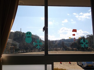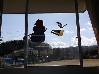 2月に入って寒い日が続きます。インフルエンザも猛威を振るっていて、近隣の小学校でも学級閉鎖が相次いでいます。本校では、インフルエンザに感染しないように、休み時間の換気を徹底する取組を始めています。保健給食委員会の児童らによって、教室の窓ガラスに貼り絵をして、窓を閉めると貼り絵が完成するというアイデアを出し合って、楽しんで換気できるように考えました。窓を開けると、左右に貼った雪だるまが完成するとても楽しい貼り絵ができました。インフルエンザに感染しないように、この冬を乗り越えたいものです。