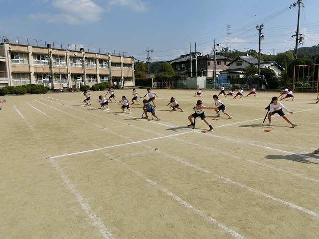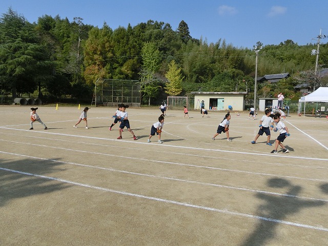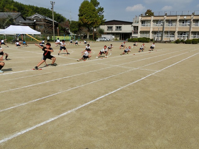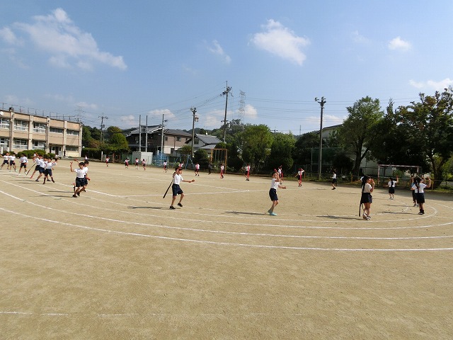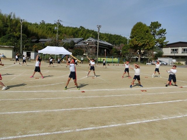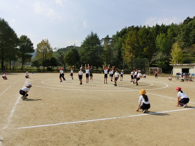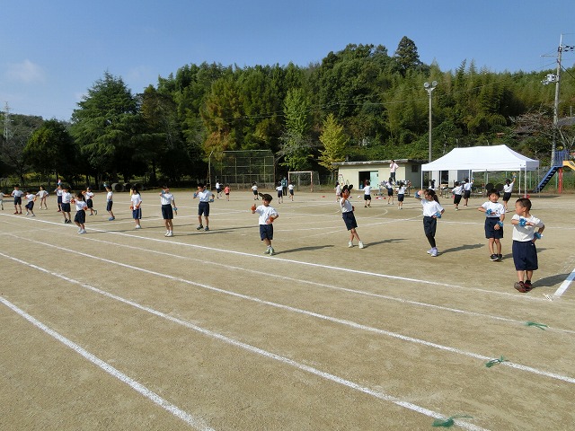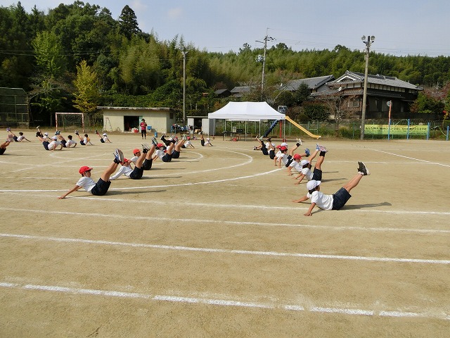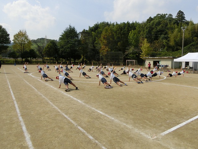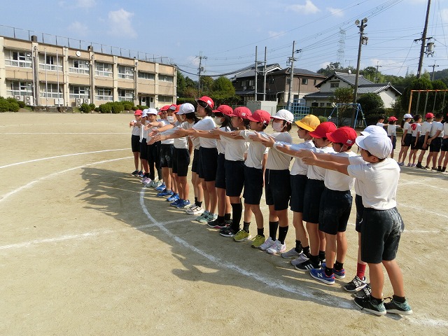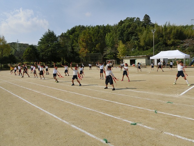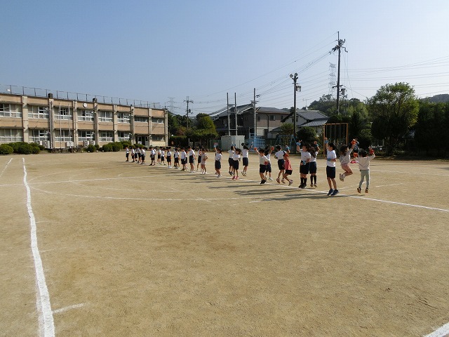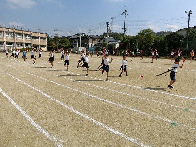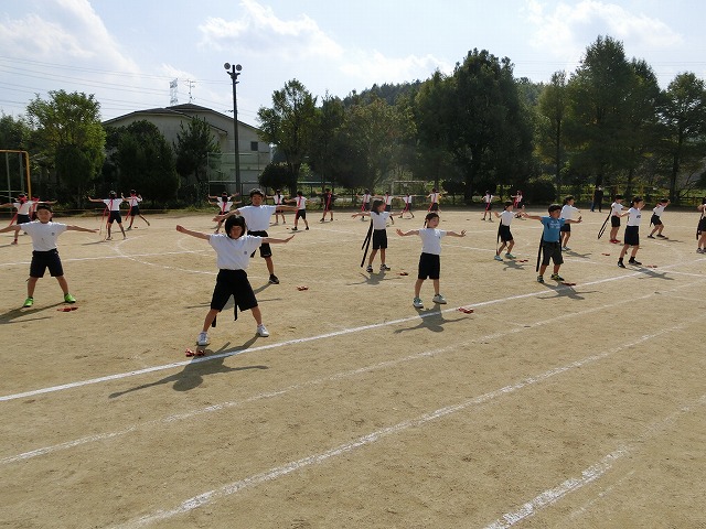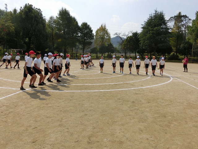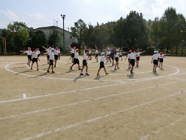 10月27日(金)いよいよ明日が「創立150周年記念ふげんじっこ大運動会」となりました。今日の午前中に全学年が運動場に出てきて、最後の表現練習を行いました。