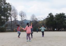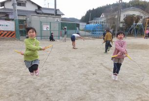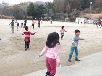 中間休みになると、運動場では縄跳びの練習が始まります。