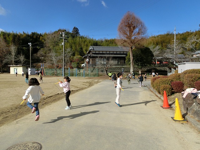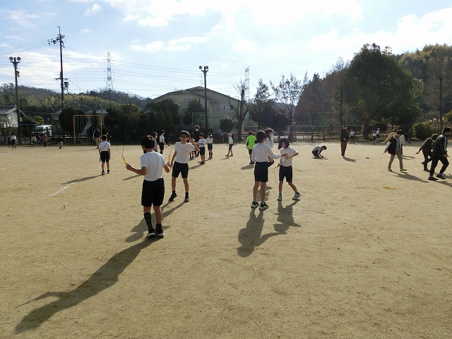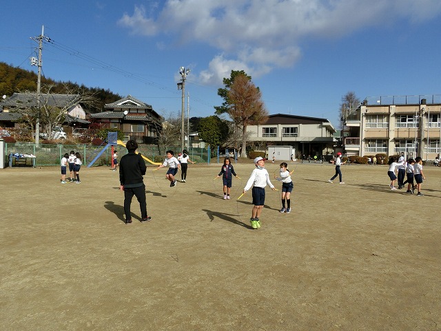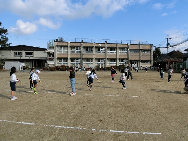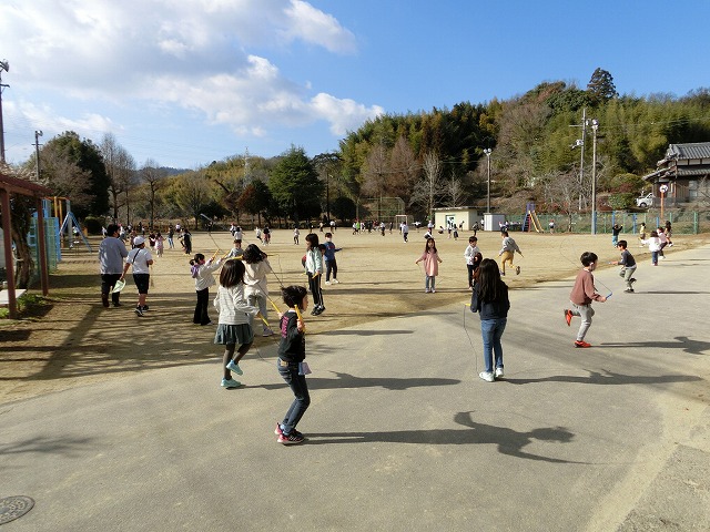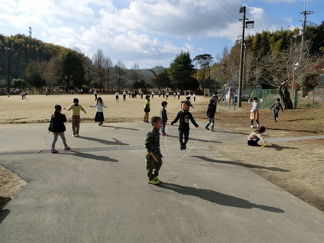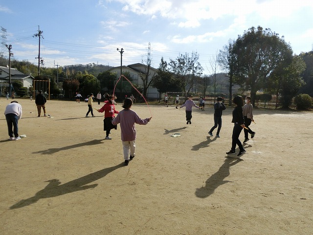 今日の中間休みも天候に恵まれ、なわとびを全校で行うことができました。