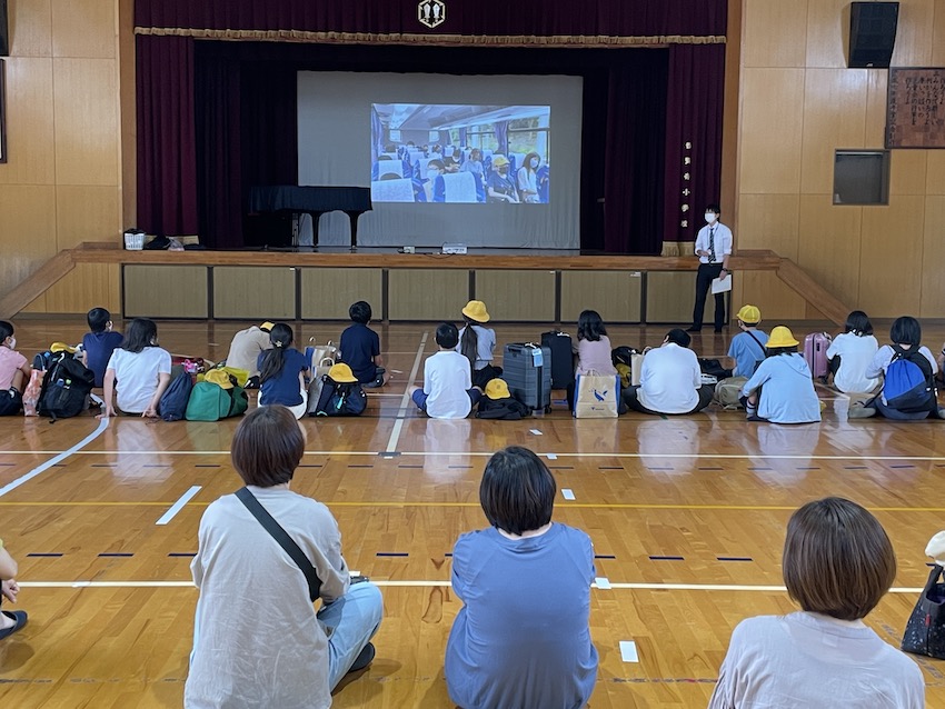 子どもたちが各グループで撮った写真と先生方が撮った写真をまとめて、簡単な動画に仕上げました。迎えに来られた保護者の方にも解散式で見ていただきました。